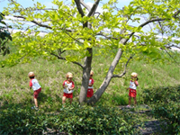 縦割り保育…3歳以上のクラスに導入はだしの保育…年間を通じて3歳以上児は、薄着の保育(日中は半袖、半ズボン)